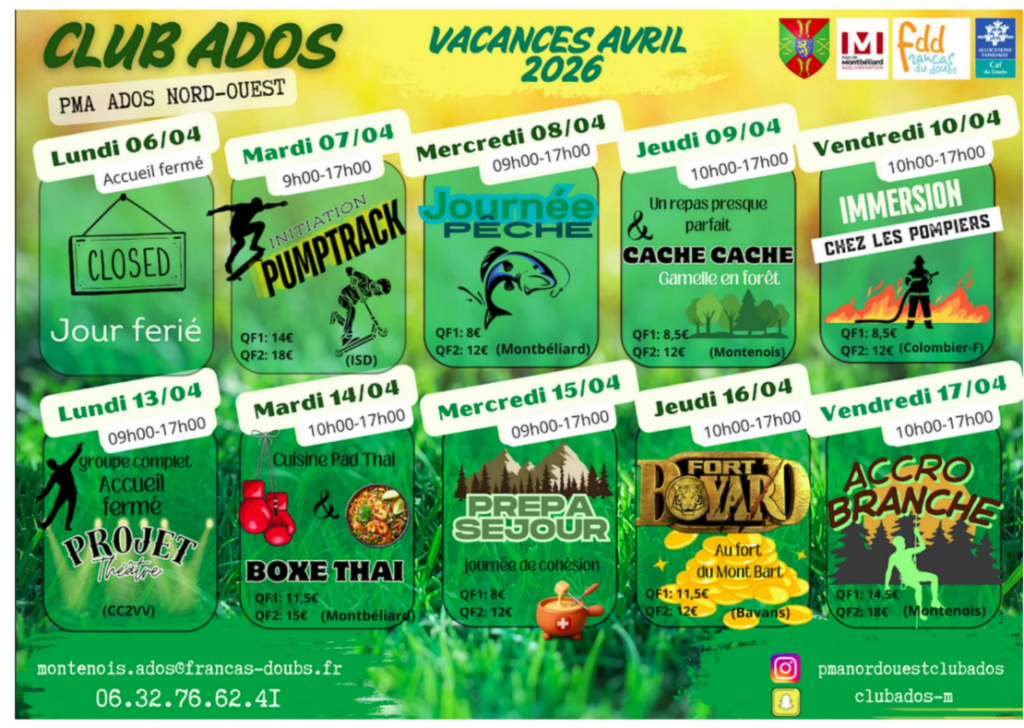 PROGRAMME DES VACANCES D'AVRIL 2026