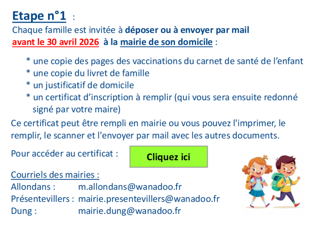 Inscription à l'école intercommunale ALDUPRE